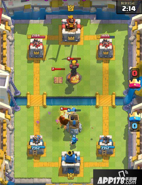 另外,不要以为大皮卡容易被遛狗,就会被距离远一格的炸弹塔吸引到!如果你不下兵去勾引的话,大皮卡会无视掉你的炸弹塔,直接砍爆公主塔。相对的,看到对面大皮卡慢悠悠走过来,你也可以把炸弹塔放偏一格,然后随便下一些兵去勾引大皮卡到你炸弹塔下,当大皮卡清完兵来打炸弹塔的时候,公主塔也会集火,这样就减轻了防守的压力。