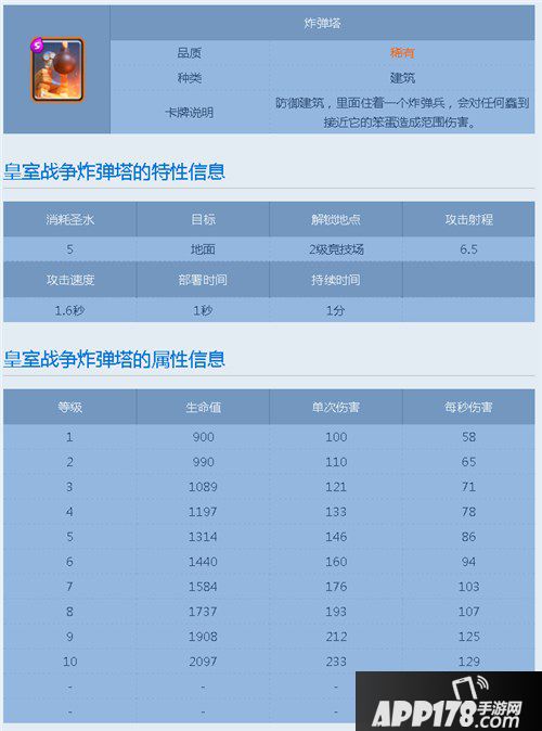 这个游戏各个版本都有各个版本强势的卡,地狱塔、电塔、土炮都被削弱过的今天,楼主要为从未削弱过炸弹塔正名!