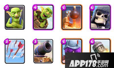 皇室战争A4-A7推荐卡组火箭飞桶流,是一个进攻非常暴力的卡组,哥布林飞桶、骷髅巨人和火箭都是能够对对手防御塔造成巨额伤害的卡,而且这个卡组相当不讲道理面对主流卡组也能打得他们东倒西歪,在A4-A7的冲杯过程中非常好用,下面我们来看看构筑吧。