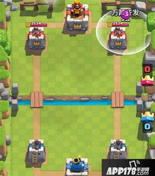 3.砸塔砸建筑砸兵都可以,但打掉公主塔塔之前,要切记一定不可用法术激活中间的国王塔!!