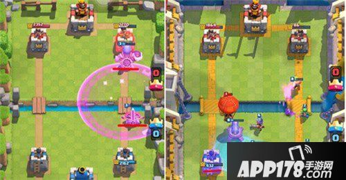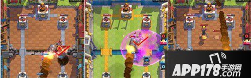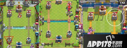 70%进攻用:在你大部队进攻过河后,放置范围需尽可能罩住对手放置兵种或防御塔及皇家塔。