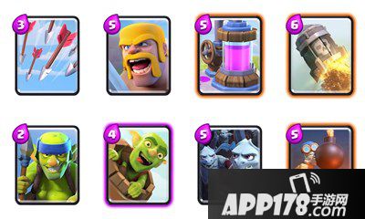 首先这是个自闭卡组,基本是不用随从过河打伤害的,靠的就是桶和导弹。所以剩下的牌全是控场牌,圣水采集器是积累优势用的,没事干就下个采集器。