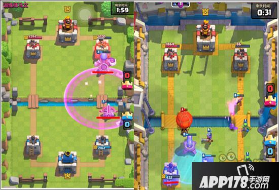 35%防御用,赚取费用差,更是化险为夷!对面大哥带着跟班来叫板,而跟班又都不是善茬,但他们扎了堆。待对手单位全部过河,将其全部“冻住,不许走”,同时下兵配合防御塔,公主塔伺候之。此外对面冰猪,冰球进攻时,冻住了你所有的防御,你可以反冰冻住他的进攻。