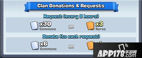 3、玩家冲上达皇家竞技场(A7,2000杯)之后,部落内部每8小时要一次卡,从原来的10张白卡或者1张橙卡,改为30张白卡或者3张橙卡。