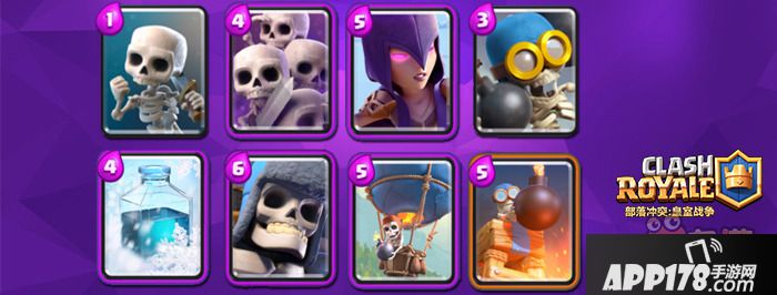 剩下3个卡位,我认为至少要有一张可以对空的卡以对应空军(说的就是你,气球)。这张卡可以是弓箭,投矛绿皮,3苍蝇,苍蝇群,火枪,法师,女巫。这里高费低费各有千秋,我个人选择的是三苍蝇。