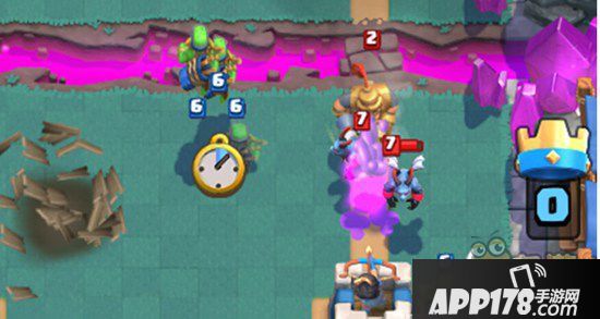 6 大骷髅的下法:不要随便用来进攻,除非算好对面费不够防我们的时候,一般来说大骷髅在我们这个组里面的作用就是防守(但不包括野猪和气球,后面会讲到野猪的防守),对面突来的人越多越好,利用它死后的一波大炸弹赚费,之后可以考虑飞龙加上一群小逗比们反攻一波,或者继续盖房子攒费,等着最后一分钟爆发。