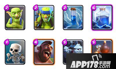很飘逸的一套电猪流。核心思想就是,起手现在家里做防御工事,下号加农炮(可用炸弹塔替换)后,凑齐光头强+野猪+小电一波电猪推进。值得注意的一个细节就是,电猪流是一套依靠快速过低费牌,从而过到电猪一套,这样基本在对方一套牌还没打完的时候,你基本已经放出2套电猪来了。下小电的时机也很重要,野猪进塔后,要么在猪半血快被塔A死前下小电,要么在敌方下小怪防御猪的时候下小电。当地方在家里树建筑防御而我方下野猪的时候,大电的作用就体现出来了,直接连箭塔带建筑一起电掉,然后再放野猪进攻。
