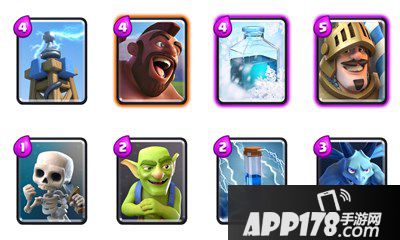 2.起手紫卡王子:王子+箭雨+哥布林投矛手+巨人+炸弹人+女武神+小皮卡+骑士