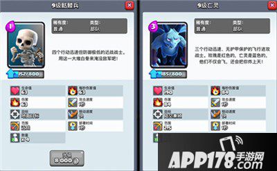 相信还有许多人质疑这两张卡的作用,骷髅兵是游戏中目前唯一一个1费卡,1费可以召唤4只骷髅兵在大皮卡、王子这样高攻的卡面前简直是克星,能够为其他部队消灭他们争取大量的时间。而亡灵这张卡战斗力不算太高,但是用于单吃骑士、野蛮人这样的卡,已经完全足够了。