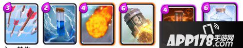 至于闪电法术,毒药法术以及导弹这三张法术卡,小编接触的相对较少。不过闪电法术和飞弹比起清掉对面的部队更适合对敌方的护卫塔直接造成伤害,配合连弩或者迫击炮可以让对手防不胜防。而至于毒药法术则可以慢慢地消耗掉对面进攻部队和防御建筑更多的血量,效果虽然不错但并非立竿见影。比较适合对面部队或者建筑扎堆儿时使用。