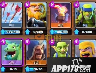 皇家巨人卡组推荐:万箭齐发+皇家巨人+地狱塔+哥布林投矛手+飞龙宝宝+法师+近战哥布林+野蛮人