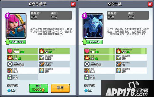 而小亡灵和弓箭手的使用率现在是逐渐升高了,因为5费的亡灵大军经常会被对手的万箭齐发或者一个电击法术就能轻松解场,导致自己亏2到3的费用,因此现在有越来越多的玩家选择使用小亡灵这张卡,因为一般玩家觉得3费换3费不算太值。弓箭手在经过上次的增强攻速后,因为血量比投矛哥布林高点,攻击也高点,3费也比较合理了,让不少玩家也开始使用这张卡片了。