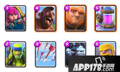 在弓箭手调整过之后其实早就有一定的出场率了,之所以和哥布林投矛手一起使用,主要还是这两张卡可以让玩家在5费的时候召唤出5个单位,并且拥有近300的远程秒伤,基本上有巨人抵挡伤害的情况下,可以轻松吃下各种部队。