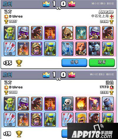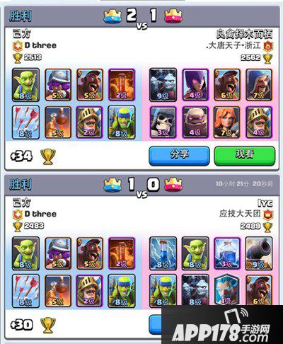 可以看到的是,无论是内战,还是土炮流,或者是对面卡组等级明显压制的时候,这套牌都可以抓住对手的失误完成小打大。经过自己不断地调试,冰冻、小闪电这类卡,从加入又到剔除,下面我说一下自己对于一些卡牌的看法以及替换的问题,我认为套牌不是固定的,关键还是每个人自己的打牌意识和思路。部落里有个小伙伴用我的卡组打了三天,仍然卡在1700没动,所以不同的人适合不同的套牌。像本人这么潇洒帅气,就适合这种飘逸的流派。