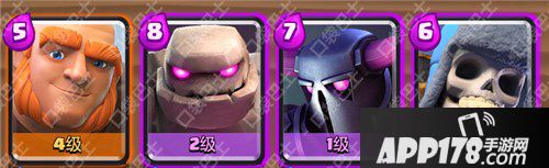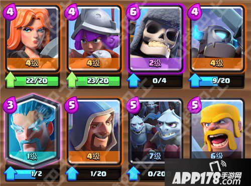 3、卡牌中还有应该有攻防一体的卡,如女武神(另文有统计女武神是巅峰对决中出现频率最高的兵种卡)、枪手、苍蝇海、冰火法、公主、小皮卡、大骷髅、野蛮人等,前期炸弹兵也算。选用哪个,应该结合整体卡组的弱势项目来选,例如已有炸弹塔配火球的,那么对空还是弱,应该补充枪手或苍蝇海;又如已有炮台配箭雨的,欠缺对肉盾的牌,用大骷髅、苍蝇海、小皮卡(注意,小皮被大皮克制)都可以。同样,能对进攻牌组有辅助作用的牌,应该优先选择。