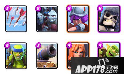 骷髅巨人、火枪手、亡灵大军、箭雨、哥布林长矛手、女武神、加农炮、哥布林飞桶