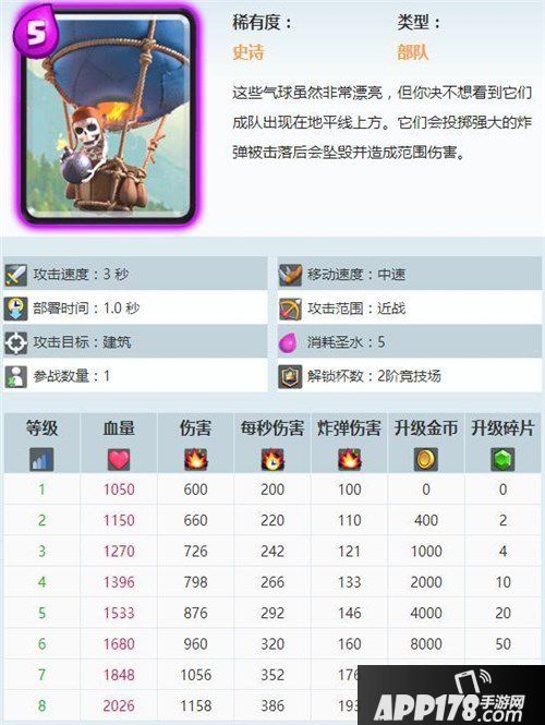 气球兵作为皇室战争游戏中一张部队卡牌,有着皇战中最高的伤害,但是气球兵又极容易被对面的建筑单位,无法完成你希望它做的事情。仔细的了解气球兵就成为了喜欢着张卡牌的玩家的必修课了,以下为玩家总结的气球兵的解析希望能帮助的喜欢这张卡的各位玩家。