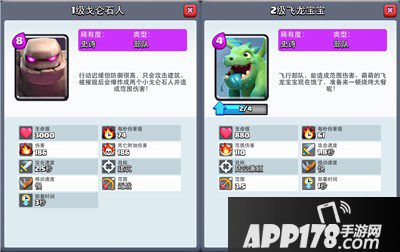 戈仑石人拥有游戏中最高的单体生命值,而且在死后会爆炸并产生两只小戈仑石人,光是这一张卡出现对手就必须要使用一定的费用去抵挡戈仑的进攻,而飞龙宝宝就可以保证对手前来抵挡的脆皮生物无法伤害到戈仑。