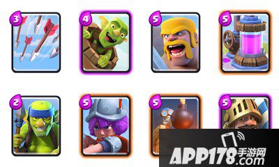 5.后期(死亡模式):这个时候是最猥琐和考验耐心的时候,原则就是-房子一定要堆起来,现在不少流派就是无脑推-一个大坦克在前面,后面跟一堆兵,还有 AOE法师一类,我们做的就是用收集器和炸弹塔吸引仇恨,王子,野蛮人切断后排输出,趁机扔桶,扔桶一定要保住自己的安全,否则就得不偿失了。对空比较弱 是这个卡组的弱点,万箭轻易不要交出,主要防苍蝇群,如果对面扔气球兵,就是炸弹塔或收集器吸引仇恨,长矛和火枪对空。