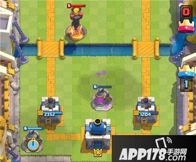 在我方半场配合公主塔战斗就是很直接的地形优势,公主塔的输出就是费用赚取的手段。之后剩余的防守士兵还会投入进攻,当然也要收到对方公主塔的输出,形成微妙的平衡。打破平衡的最直接手段就是更多的费用换取强力单位协同进攻改变局势。