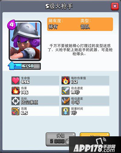 8.火枪手和三个火枪手、冰法师、公主:火枪手是强力的对空对地远程伤害单位,具有6.5射程,在远程对付各种地面和空中单位都十分给力,本身血量也不错,无法被同级火球消灭,除了面对大群的单位比较乏力之外,射程和稳定的远程伤害都是针对中小型地空单位的首选,适当保护之后持续输出十分惊人。冰法师具有减慢群体士兵攻速和移动速度,以及建筑攻速的特效,同时自身血量不错,是非常强力的克制牌,持续存活可以极大程度地降低敌人的移动和输出效率,进攻端也能保护己方单位,唯一的缺点就是自身输出较低,但不可否认冰法师是一张很恶心的针对牌。公主9.5的超远射程同时具备群体伤害,很容易清理和压制小单位和慢速单位,在安全位置是骷髅、哥布林和亡灵的克星,持续存在也能一直在远处辅助进攻施加压力,逼对面交费用解公主,逼出万箭齐发、火球等法术之后,被这两种法术克制的单位就非常强大。