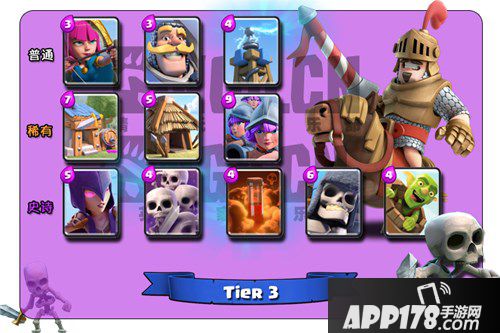 T3当前环境中可以在少数套路中有所发挥,不建议部落内乞讨,但金币富余的时候可以考虑在商店买几张。