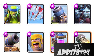 非常靠谱的卡牌,适合用来对付巨人等一类肉盾。而在这套牌组中野蛮人算得上是必备,因为目前野猪骑士/电击流非常常见,野蛮人用来对付这套组合非常合适,尤其是电击法术用在野蛮人身上几乎一点儿作用都没有。