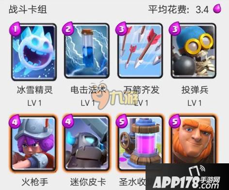 冰雪精灵+电击法术+万箭齐发+投弹兵+火枪手+迷你皮卡+圣水收集器+巨人