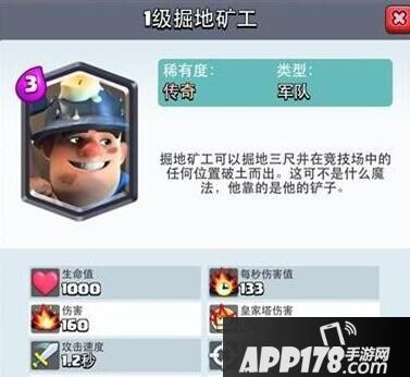 对抗矿工有两种办法,可以沉底公主用APP178卡抓,或者贴着国王塔在中间下,这样矿工会激活国王塔(前提,公主有目标没往前走)