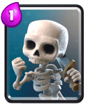 皇室中一费只有冰激凌和骷髅兵这两张卡,他们都有自己的特性,冰激凌可以冻人,而骷髅并却又更强的两个功能:调卡,偷袭,调卡不用说大家都有过经历,偷袭就是想矿工这样的卡打过来,把骷髅放屁股后面打。