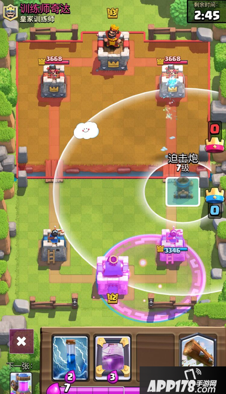 你不可能裸丢一个巨人或者石头人然后让他走到炮前面去拆炮,拆掉炮的肯定是你的后排。这样才符合实战应有的道理。那么这就表明炮的这个4.5和3.5内径的改动并不会影响你的炮是否会锁定公主塔,因为他没这个命。