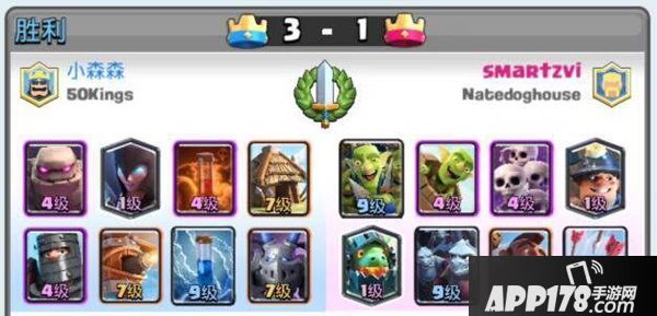 我方卡组简介:经过平衡性调整后,圣水收集器惨遭削弱,因此本套毒石流使用哥布林小屋来替换圣水收集器发挥赚费与骗法术的作用。在石头人推线过程中,毒药是极佳的搭配法术,配合小电以及后排的投矛手输出,可以瞬间清理掉敌方的亡灵大军,对于敌方的野蛮人等也能产生不俗的血量消耗。