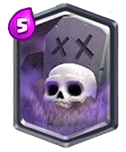 骷髅召唤:核心输出卡,能够在10秒内持续产出小骷髅进行对战消耗,当我们其他高血量单位吸引到公主塔的目标后,蹦迪的输出非常爆炸!如果对手使用轻人海卡防守,我们可以直接搭配毒药进行斩杀。