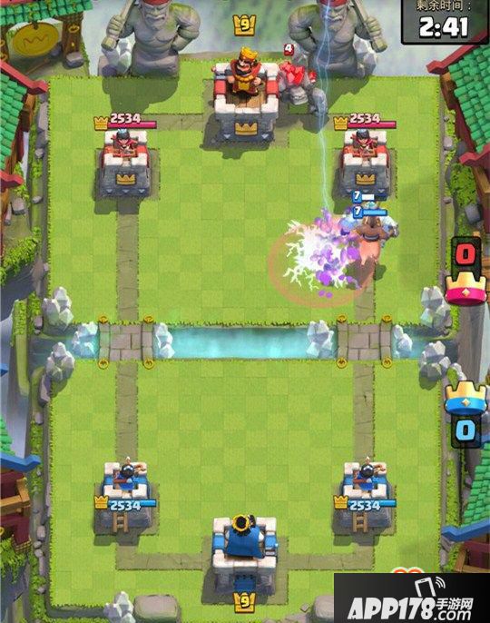 电击法术:辅助法术卡,在我们打出野猪骑士或者地狱飞龙的进攻时,如果敌方使用骷髅军团或者蝙蝠防守,能够直接斩杀!除此之外,电击法术还具有0.5秒的眩晕能力,特殊情况下能够用于控场。
