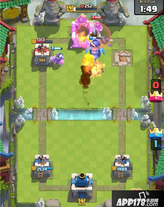 如果对手的进攻火力较猛,可以使用戈仑冰人来吸引火力为其他卡争取输出时间,或者使用火球以及滚木等单位组合防守。