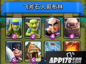 石头人是《皇室战争》中血量最厚的肉盾,拥有强大的推线能力以及不俗的分裂伤害。当使用石头人搭配飞斧屠夫这种拥有贯穿伤害的后排兵种时,飞斧屠夫可以帮助石头人清理前排陆空粉丝敌兵,辅助石头人尽量以较低的血量消耗来抵达敌方塔下并打出输出。不过实战中想要完整地打出这一波高费进攻,需要相应的圣水支撑,而均费较低的哥布林卡牌则可以为我们提供赚费的机会。今天为大家介绍的是一套以石人屠夫为核心、以哥布林卡牌为辅助的一套飞斧石人哥布林流派打法,希望对大家能有所帮助。