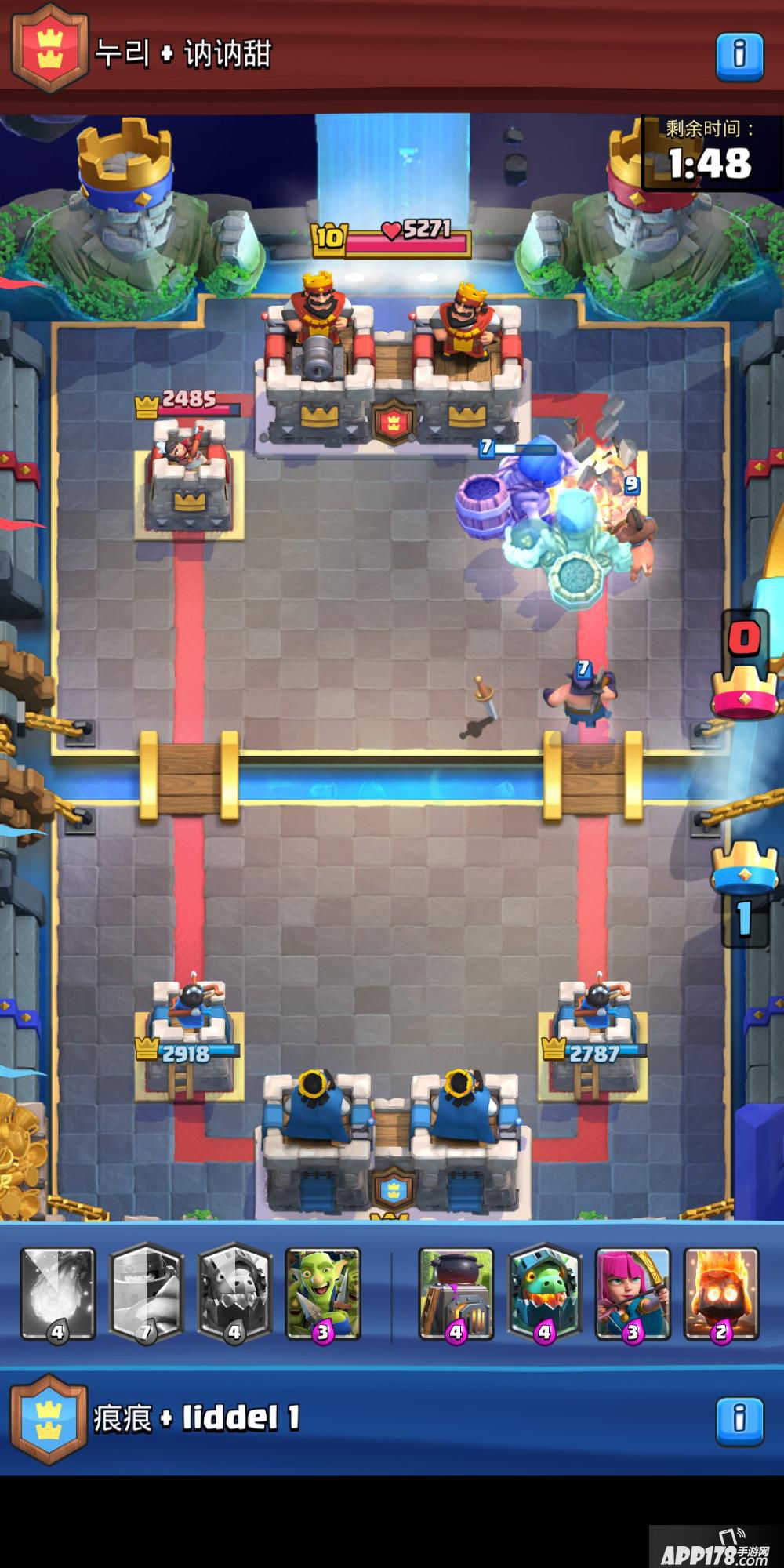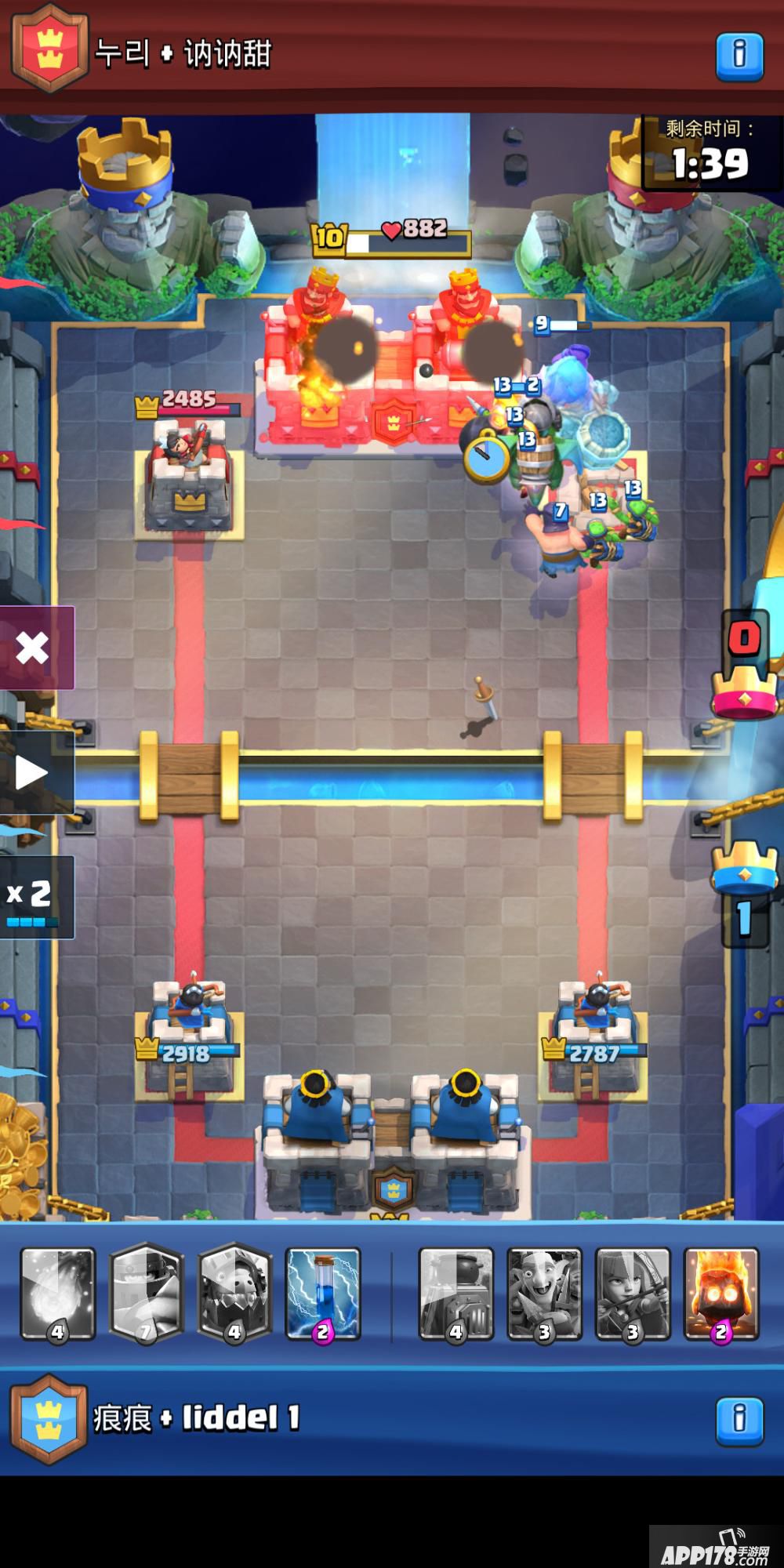 了解到骷髅巨人的威力,就知道了决胜的要素,那就是尽可能地让骷髅巨人离公主塔更近一些。所以我们为它搭配了弓箭手和烈焰精灵这两张卡牌,弓箭手可以跟在骷髅巨人之后攻击敌军,并且有一个很好的优势就是弓箭手等级够高的话,滚木和万箭齐发都无法一次消灭他。烈焰精灵当然就是远程清理粉丝套,让骷髅巨人的障碍更少一些。