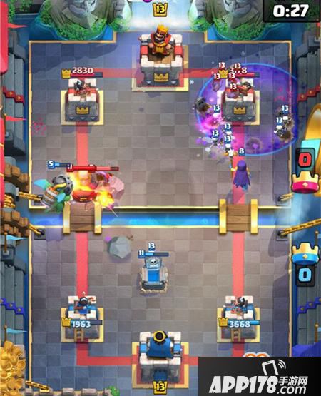 除了坦克的进攻外,辅助卡牌的选择同样很重要,女巫的溅射秒伤会很优异,但是单体伤害偏低,所以辅助单位上多是搭配单体伤害较高的兵种,地面单位上“狂暴樵夫”和“迷你皮卡”是很好的选择,具备高破坏性,而空战兵种上“重甲亡灵”的使用相对较多。