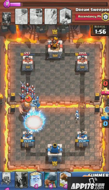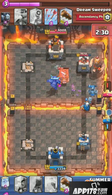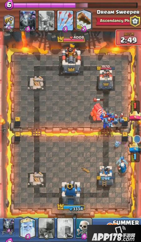 想要防守住这波就要有所取舍,我方扔出大皮卡砍死电磁炮以后拉扯走亡灵大军,幽灵和防御塔先消灭巨人,成功续命!(此处应该为小编的机智点赞)