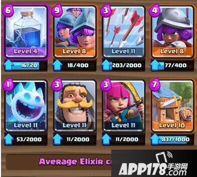 这卡组的特点就是前期稳守。然后中期看准机会利用三枪的爆发力造成致命伤害。后期利用法术打本斩杀或者直接四枪+人海强攻。这套卡组是一紫三橙4白。价格低廉,卡牌获取容易。野蛮人房子是10级。其他卡片等级都是处于4811的状态。唯一的紫卡大闪电只有4级,已经足够去除10级的法师和火枪。在4500杯附近够用。