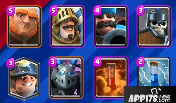 胖子+王子+机甲的标准推进格式,双法术扫清前进道路,每波推进都能稳定耗血。而猎人盾牌的存在,又让对手不敢贸然换路,猎人配合单位解场后顶上桥头胖子反打,堪称无解的存在。在胖子打不进去的情况,可转矿工挖血,法术带火球更好打皇家猪,而毒药则更好应对墓园。