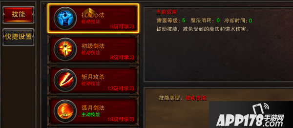 然后是抗魔心法,作为一个被动技能,我们不能对它有太高的期望,不过作为前排顶伤害的肉盾,能减免部分魔法和道术伤害的它可是相当重要的,能扛住伤害输出的才是真战士!