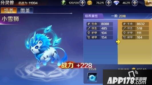 可解锁不同分灵兽,每次解锁均会增加战力,同时解锁后的可跟随出来展示