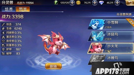 可解锁不同分灵兽,每次解锁均会增加战力,同时解锁后的可跟随出来展示