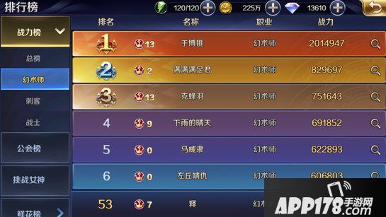 1、战力榜:分为各个职业榜和总战力榜,各职业榜对应该职业在全区的排名,总战力为所有职业的混合战力排行