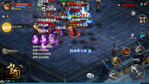 9377《皇图》当中的每一个副本,都会刷新大量的怪物或者强大的BOSS。一大波蜂拥而上的经验怪物、天关守卫、招财童子......虽然气势慑人,不过这些对于玩家们来说根本没有任何的威胁。在玩家们看来,这些怪物BOSS就是移动的百宝箱,大刀一挥,成片倒下的怪物便是丰厚的奖励!