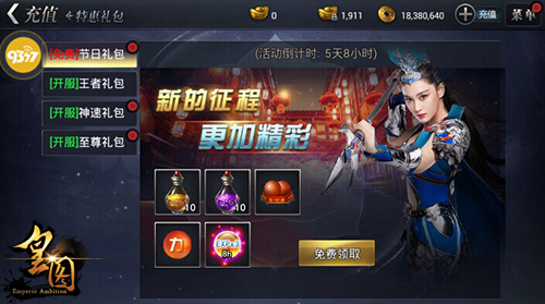 《皇图》五一劳动节狂欢盛典于4月26日-5月2日期间进行,在此期间,凡是等级达到80级或者以上的勇士,均可以在“特惠礼包”处免费领取一个劳动节惊喜大礼包,内含物防附魔精华、魔防附魔精华、龙魂丹(中)、大力丸(高级)、三倍经验(8小时)等珍稀道具!