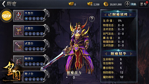 《皇图》此前推出的附魔系统,可以让勇士强者们通过对头盔、衣服、武器、腰带以及靴子这些装备部位进行附魔打造,获得战力的大幅度提升。只是,装备附魔需要消耗生命、攻击、暴击、物防、魔防这五大附魔精华。而要想获得珍稀的附魔精华,战斗不可避免!