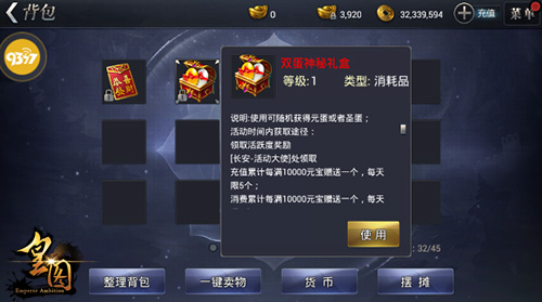 在《皇图》的“双蛋秘境”活动当中,圣蛋、元蛋这两大道具可通过开启“双蛋神秘礼盒”随机获得。