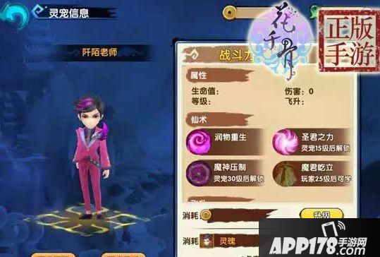 阡陌老师作为一个强力的辅助灵宠,灵宠飞升属性加成角色生命值非常可观。并且阡陌老师灵宠拥有着强大的辅助技能,尤其是他的圣君之力技能,给队友提供100%的伤害加成,这可以让战斗的胜利几率大大提高!